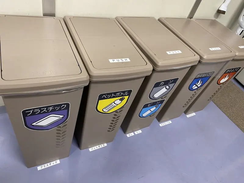 ゴミの分別方法をイラストで示した事例です。色分けもされているため、より直感的に分かるようになっています。